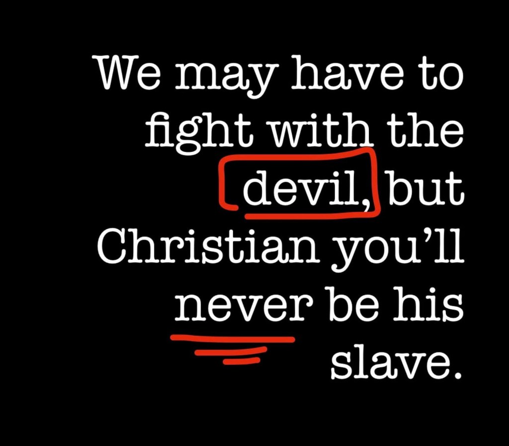 Spurgeon explains, “Beloved, we still are tempted by Satan, but we are not under his power; we have to fight with him, but we are not his slaves. He is not our king; he has no rights over us; we do not obey him; we will not listen to his temptations.”