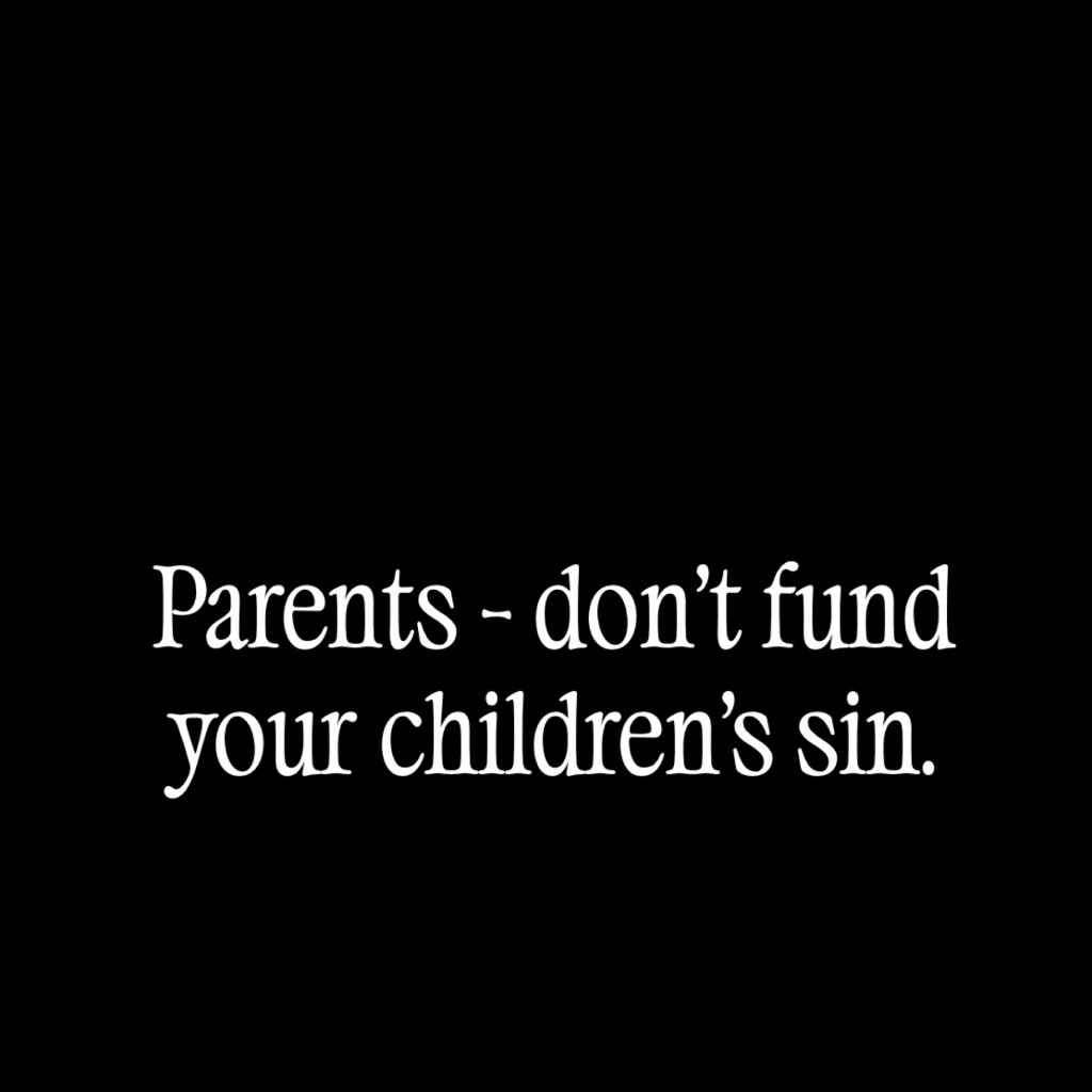 The truth is, part of loving our children is to help them not to sin, and some parents are actually doing just the opposite…they are footing the bill.