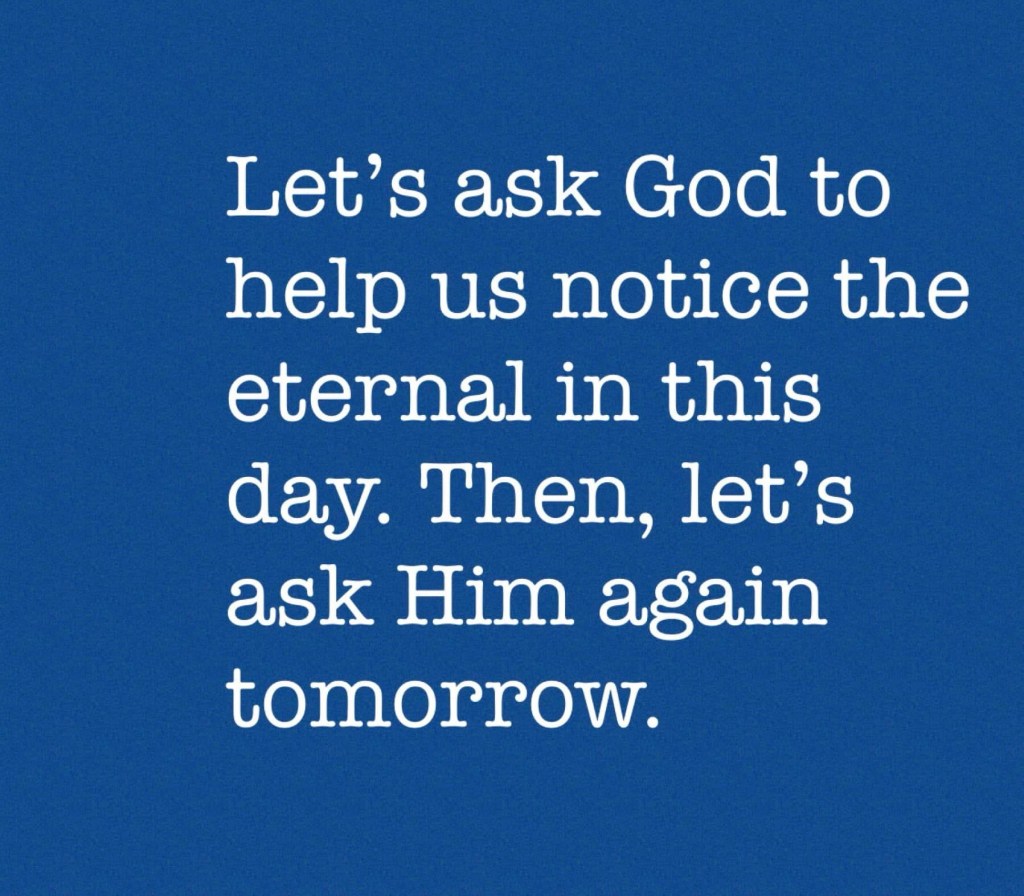 Let’s ask Him to help us notice the eternal in this day. Then, let’s ask Him again tomorrow.