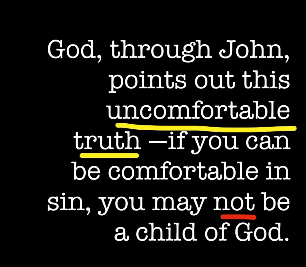 God, through John, points out this uncomfortable truth —if you can be comfortable in sin you may not be a child of God.