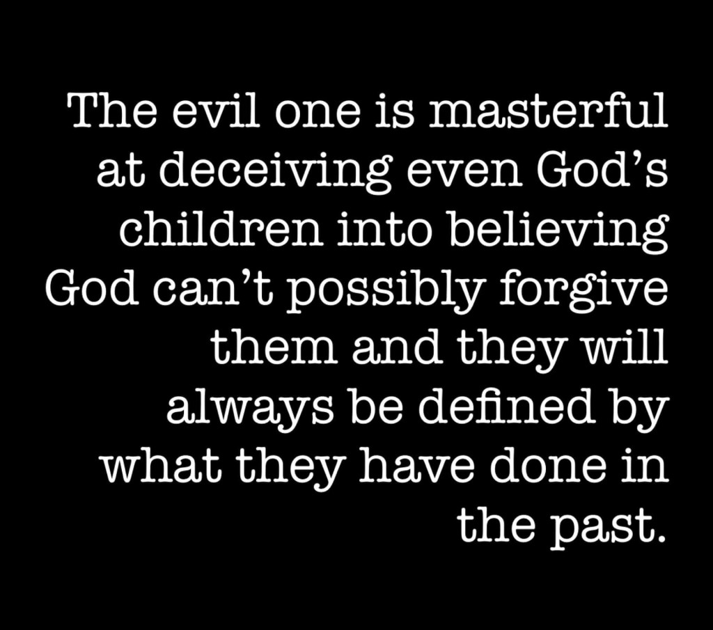 The evil one is masterful at deceiving even God’s children into believing God can’t possibly forgive them and that they will always be defined by what they have done in the past.