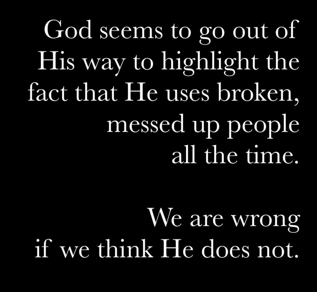 Our human hearts might consider these too dirty, too far gone. But God seems to go out of His way to highlight the fact that He uses broken, messed up people all the time.